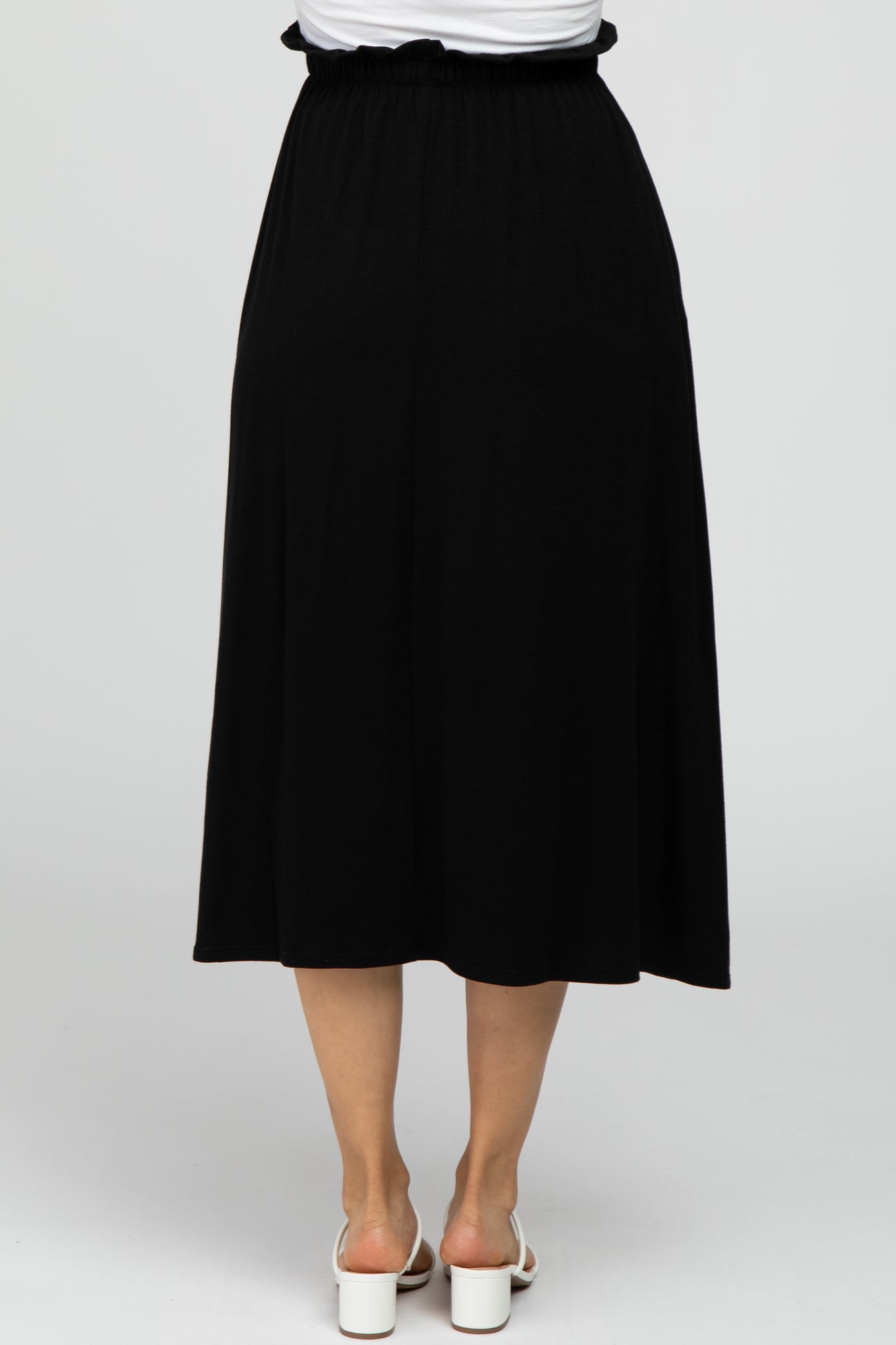 Black Ruffle Waist Midi Skirt