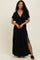 Black V-Neck Flutter Sleeve Side Slit Maxi Dress