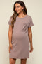 A velvet maternity dress featuring floral burnout velvet long sleeves, a collar, a split v-neckline, and a slight hi-lo hem.