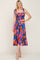 Details A printed midi dress with a smocked bodice, adjustable self tie straps, and ruffle trim. Dress is partially lined. Content + Care