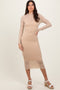 Brown Basic Fitted Long Sleeve Top