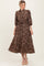 Brown Floral Neck Tie Midi Dress