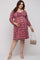 Burgundy Floral Ruched Long Sleeve Plus Maternity Dress
