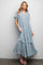 Details A floral chiffon midi dress featuring a ruffle neckline, a button down front, a tiered skirt, short sleeves with a smocked band and double lining. Content + Care