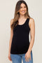 A pair of crop length, linen maternity pants featuring an elastic waistband, side pockets and fringe trim.