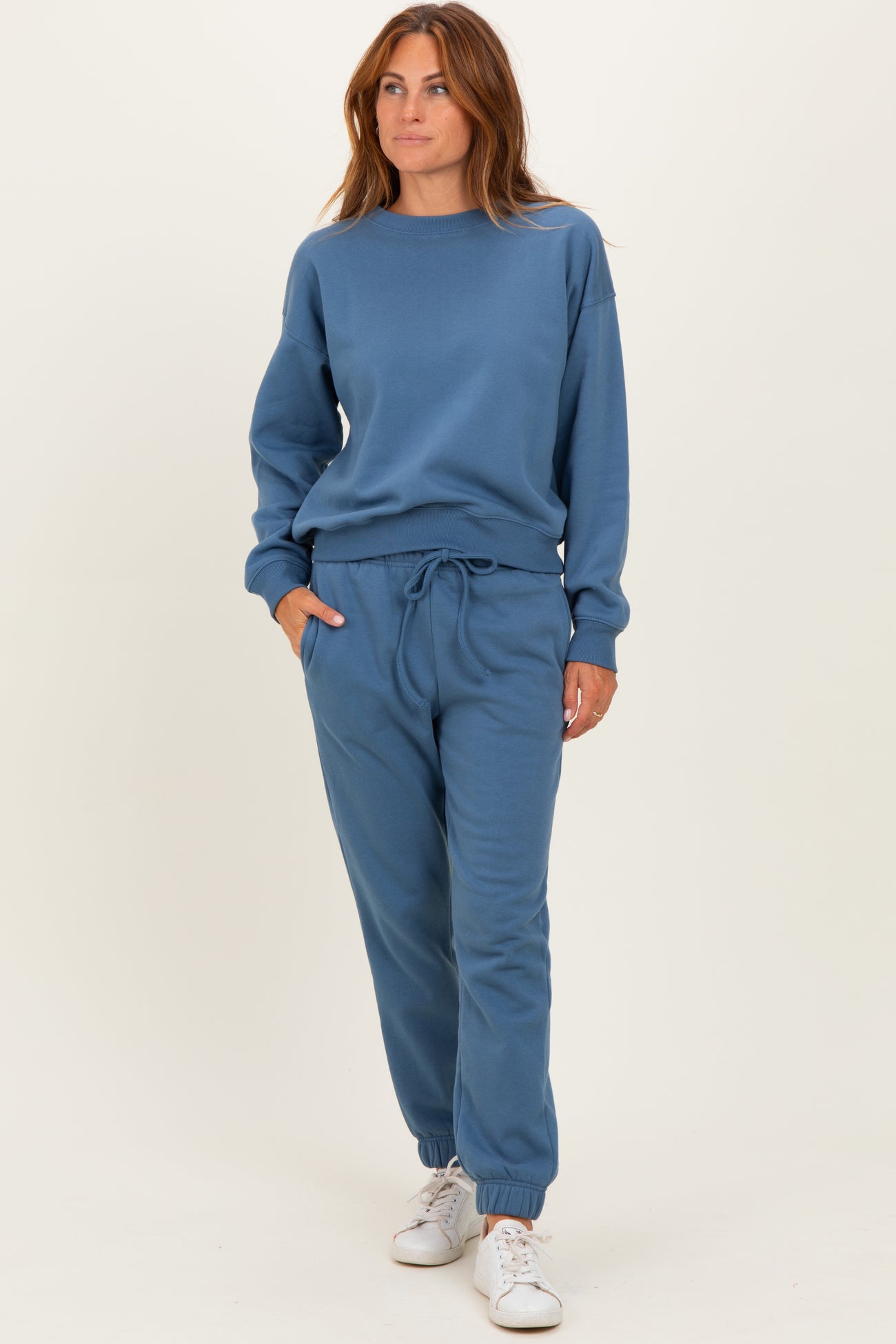 Dusty Blue Fleece Long Sleeve Pullover & Jogger Set