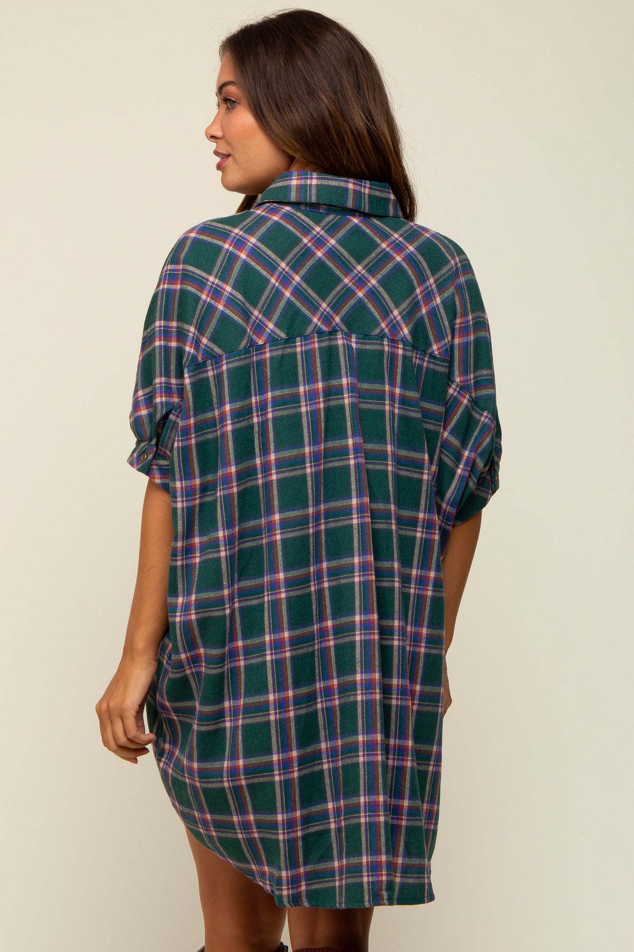 Forest Green Plaid Oversized Maternity Mini Dress