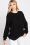 A solid drawstring hooded sweater with contrasting cable knit long sleeves.