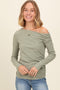 Ivory Ribbed Scoop Neck Long Sleeve Top