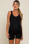 A pair of light washed maternity jeans with 5 pockets, distressed knees, an elastic belly band, and a raw hem.