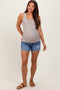 Light Blue Floral Embroidered Sleeveless Maternity Maxi Dress