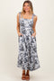 Light Blue Floral Flyway Sleeve V-Neck Tiered Maxi Dress