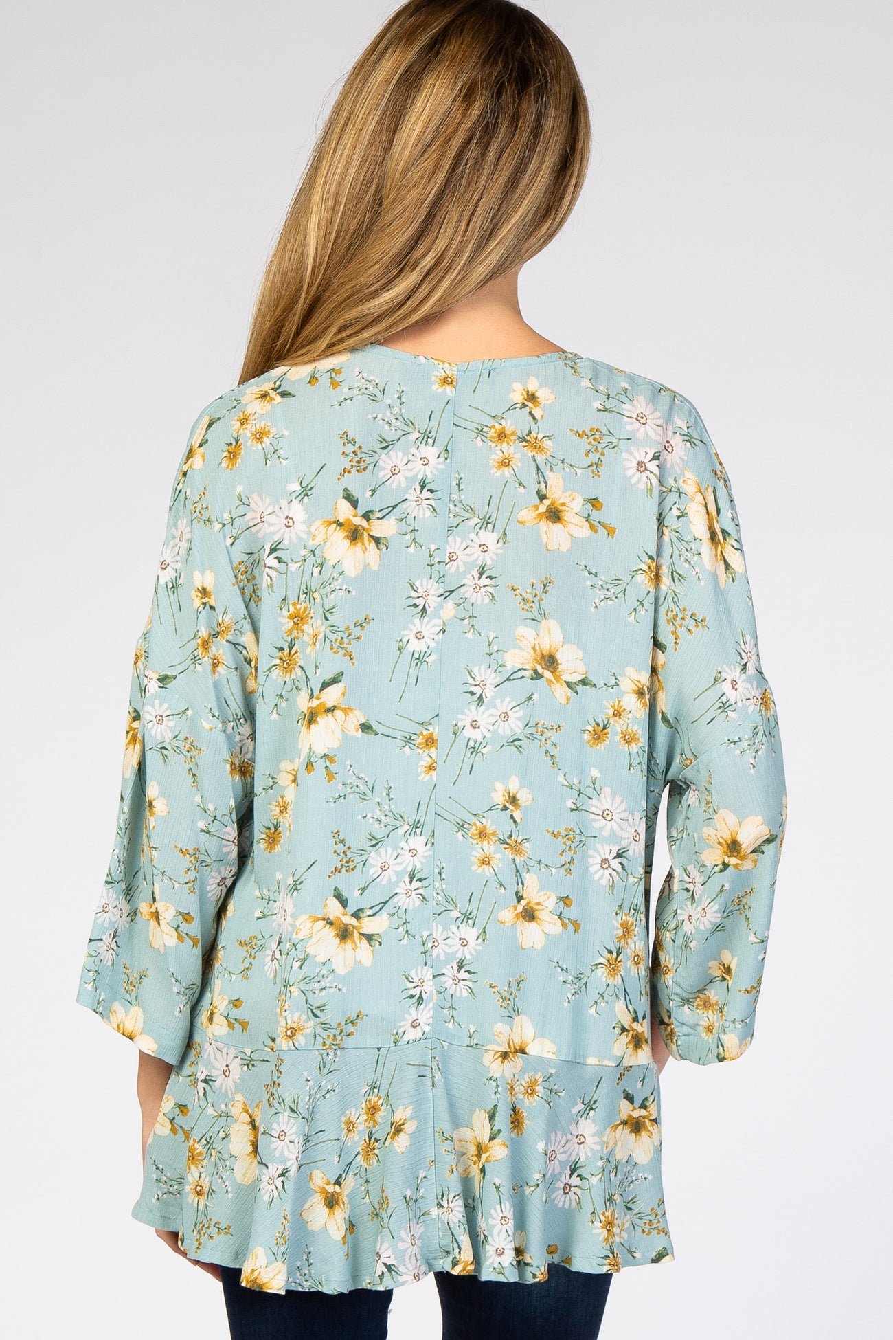 Light Blue Floral Ruffle Hem Maternity Cover Up