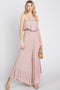 Details A solid midi dress with ruffle straps and a smocked bodice. Pocketed. Content + Care