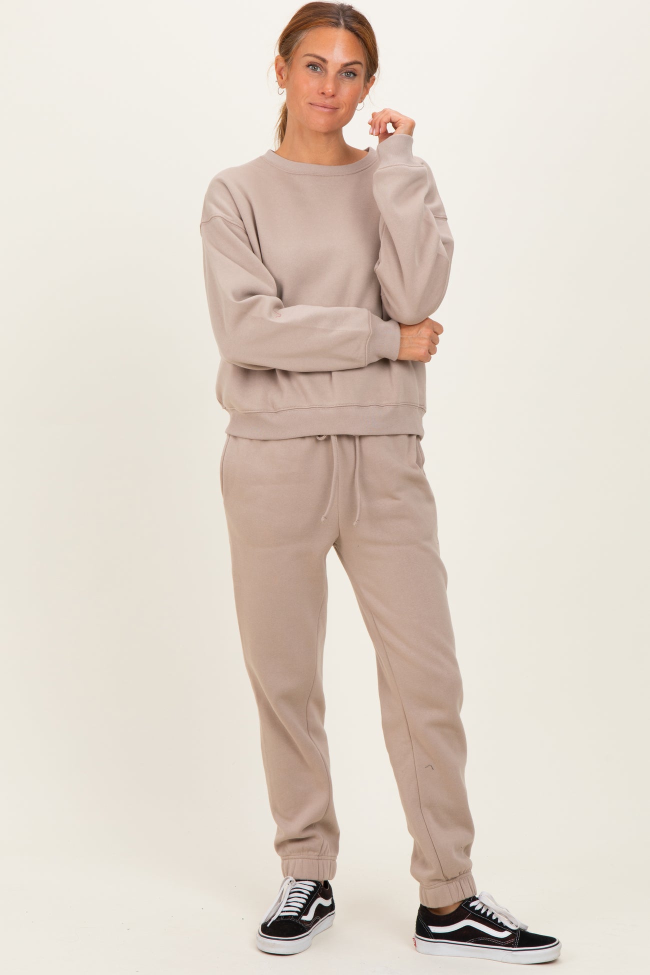 Light Mocha Fleece Long Sleeve Pullover & Jogger Set