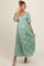 Light Olive Embroidered Leaf Print Striped Maternity Maxi Dress