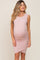 Details A solid sleeveless maternity dress featuring side ruching, a tulip hem and rounded neckline. Content + Care