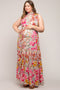 Magenta Corduroy Button Front Fringe Hem Maternity Dress