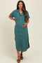 Mocha Floral Tiered Shoulder Tie Maternity Midi Dress