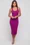 Details A ribbed midi dress with a scoop neckline, adjustable straps, and a side slit. Content + Care