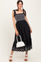 Navy Blue Striped Ribbed Knit Sleeveless Midi Dress