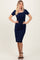 Navy Square Neck Belted Midi Dress