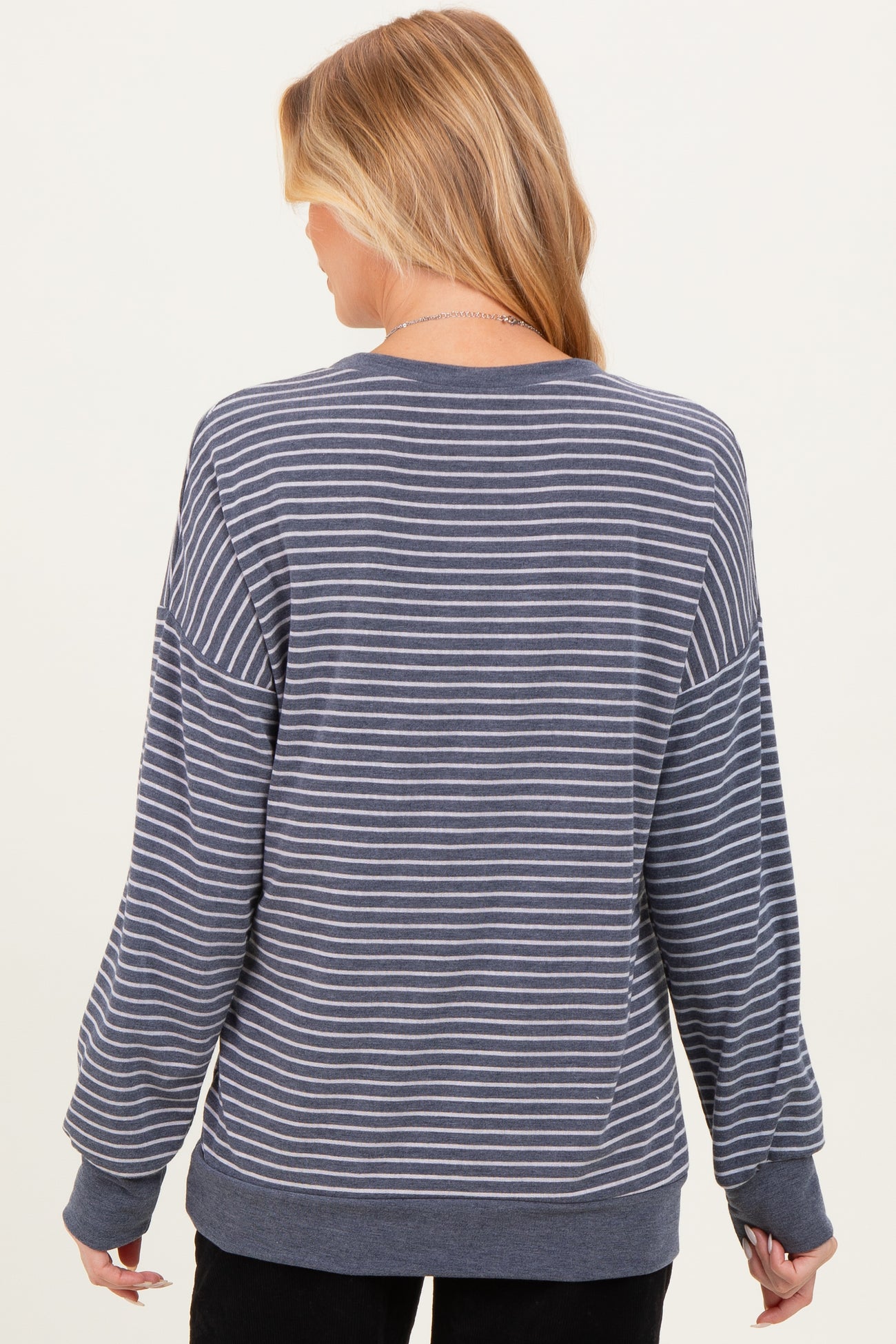 This striped crew neck pullover maternity top is designed for ultimate comfort and style throughout your pregnancy. Made from a soft, breathable fabric, it gently stretches to accommodate your growing bump without sacrificing shape. The relaxed fit and lightweight material make it perfect for layering or wearing on its own. Featuring long sleeves with cozy cuffs and a classic crew neckline, this top ensures you stay comfortable and chic in any season. Ideal for casual outings or lounging at home, it’s a versatile addition to your maternity wardrobe. Easy to care for and effortlessly stylish.