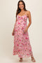 A solid hued maternity jumpsuit featuring short dolman sleeves, a v-neckline with wrap accent, a cuffed, tapered leg style, and a sash tie.