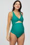 A floral print maternity swimsuit, featuring a deep v-neckline, adjustable ruffle straps, ruched sides, a scoop back with adjustable self tie, a double lining and removable padded cups.