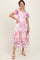 Purple Tie Dye Lace Puff Sleeve Midi Dress