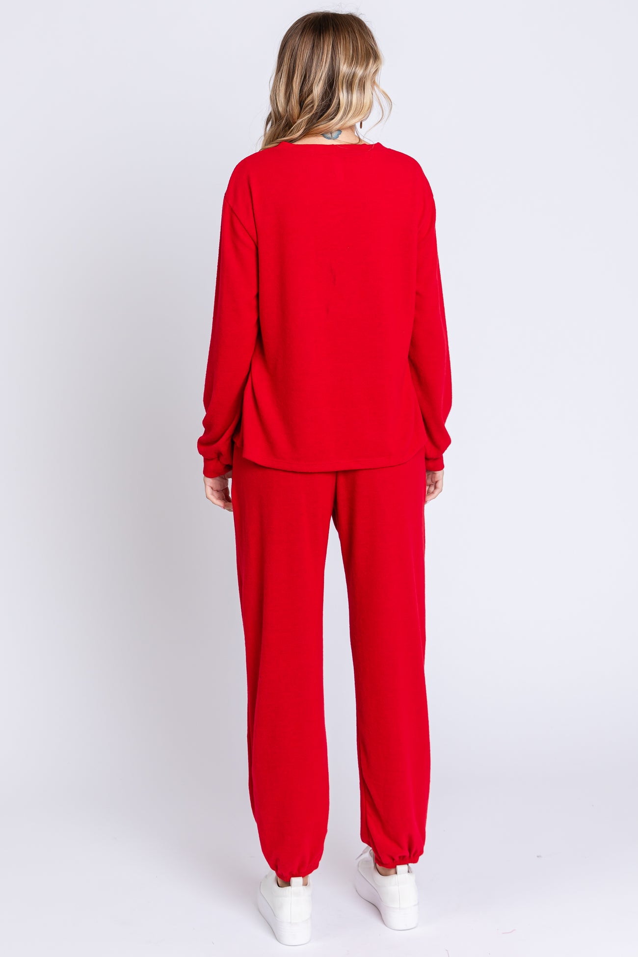 Red Soft Knit Brushed Long Sleeve Lounge Set