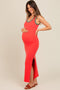 Rust Ribbed Long Sleeve Plus Maternity Dress