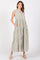 Sage Striped Sleeveless Tiered Linen Midi Dress