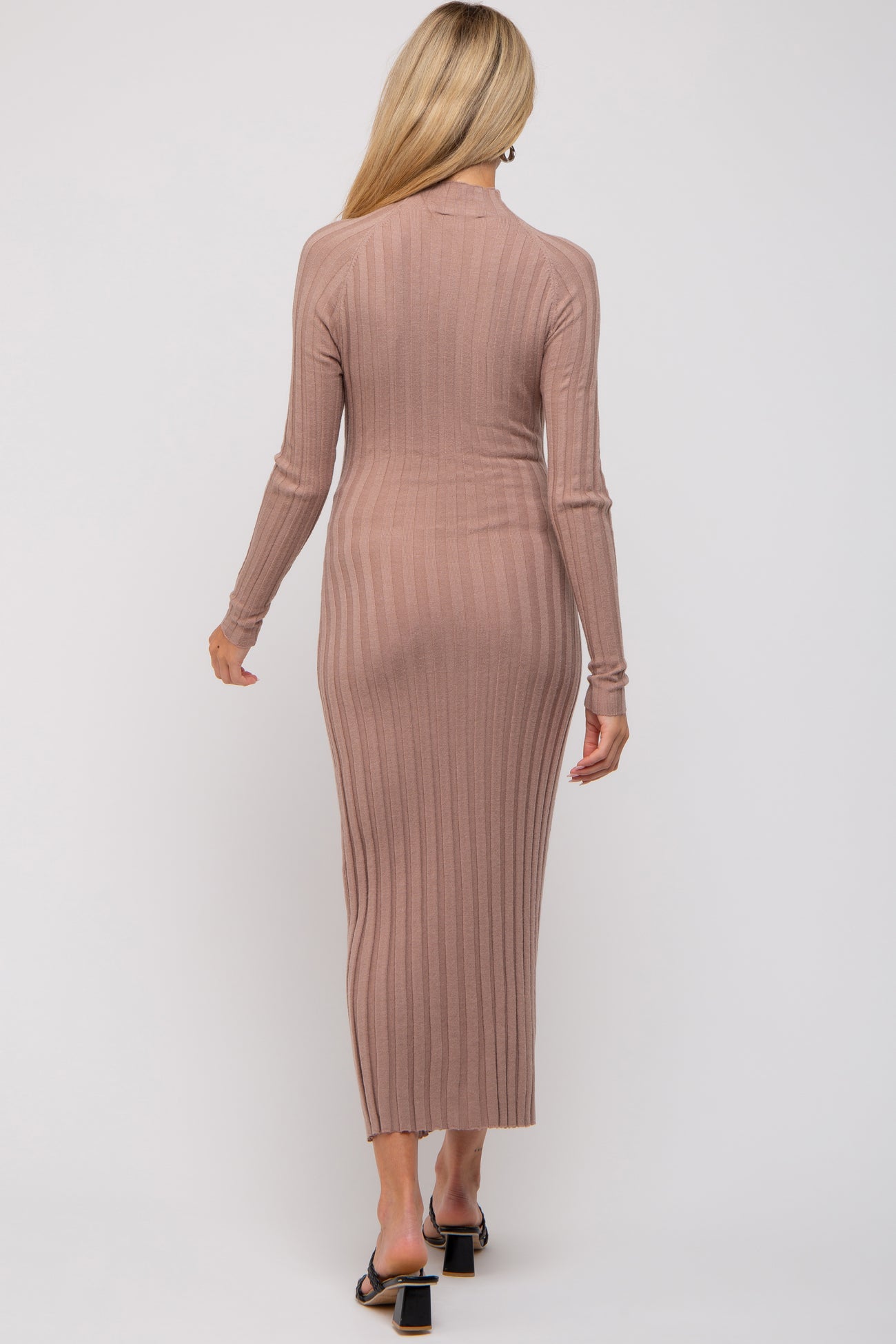 Taupe Ribbed Turtle Neck Maternity Midi Dress