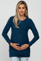 A solid hued maternity blouse featuring short sleeves and a v-neckline.