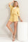 Details A solid set with a short sleeve button down collared top and elastic waistband shorts with adjustable drawstring. Content + Care