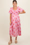 Black Pleated Bodice Puff Sleeve Maternity Midi Dress