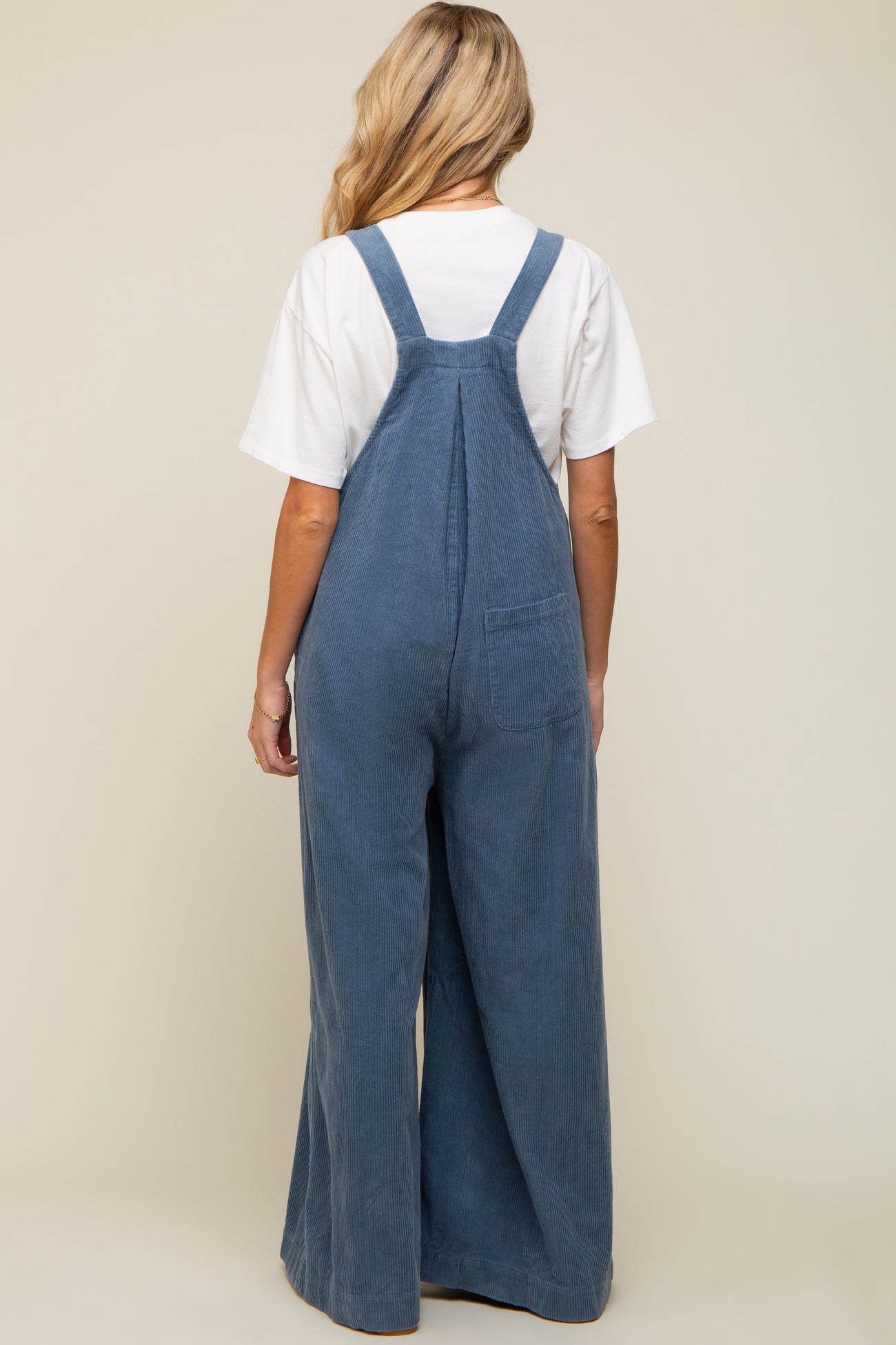 Blue Corduroy Front Pleated Wide Leg Maternity Overalls