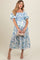 Blue Floral Smocked Puff Sleeve Maternity Midi Dress