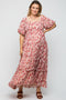 A maternity one-piece swimsuit featuring a ruched square neckline with ruffle trim, short puff sleeves and removeable pads.