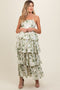 Details A solid maternity strapless maxi dress with a cinched tie smocked bust, cutout back detail and ruffle hem. Skirt is double lined. Content + Care