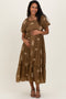 Beige Floral Puff Sleeve Maternity Midi Dress