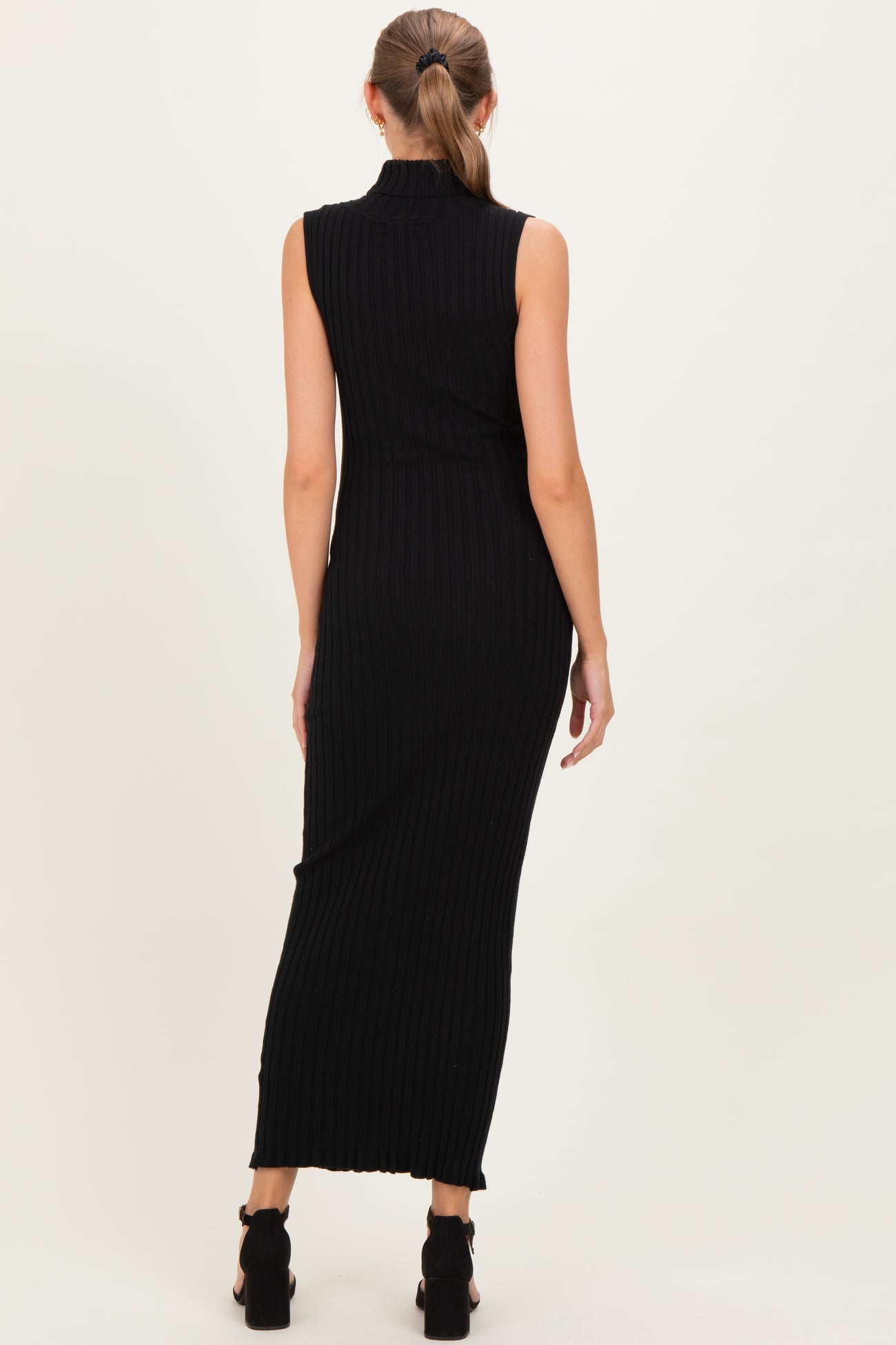 Black Turtleneck Ribbed Knit Sleeveless Maternity Maxi Dress