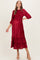 Burgundy Pleated Satin Smocked Bodice Maternity Midi Dress