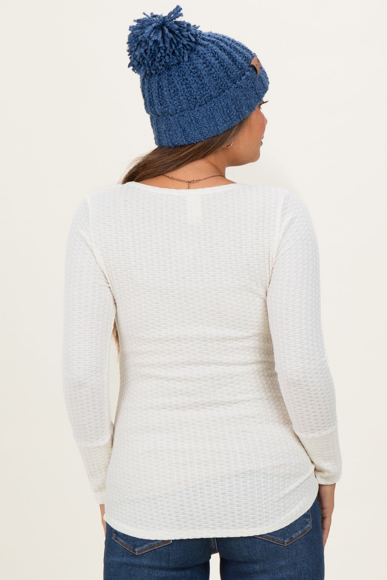 Cream Waffle Rib Knit Maternity Henley Top