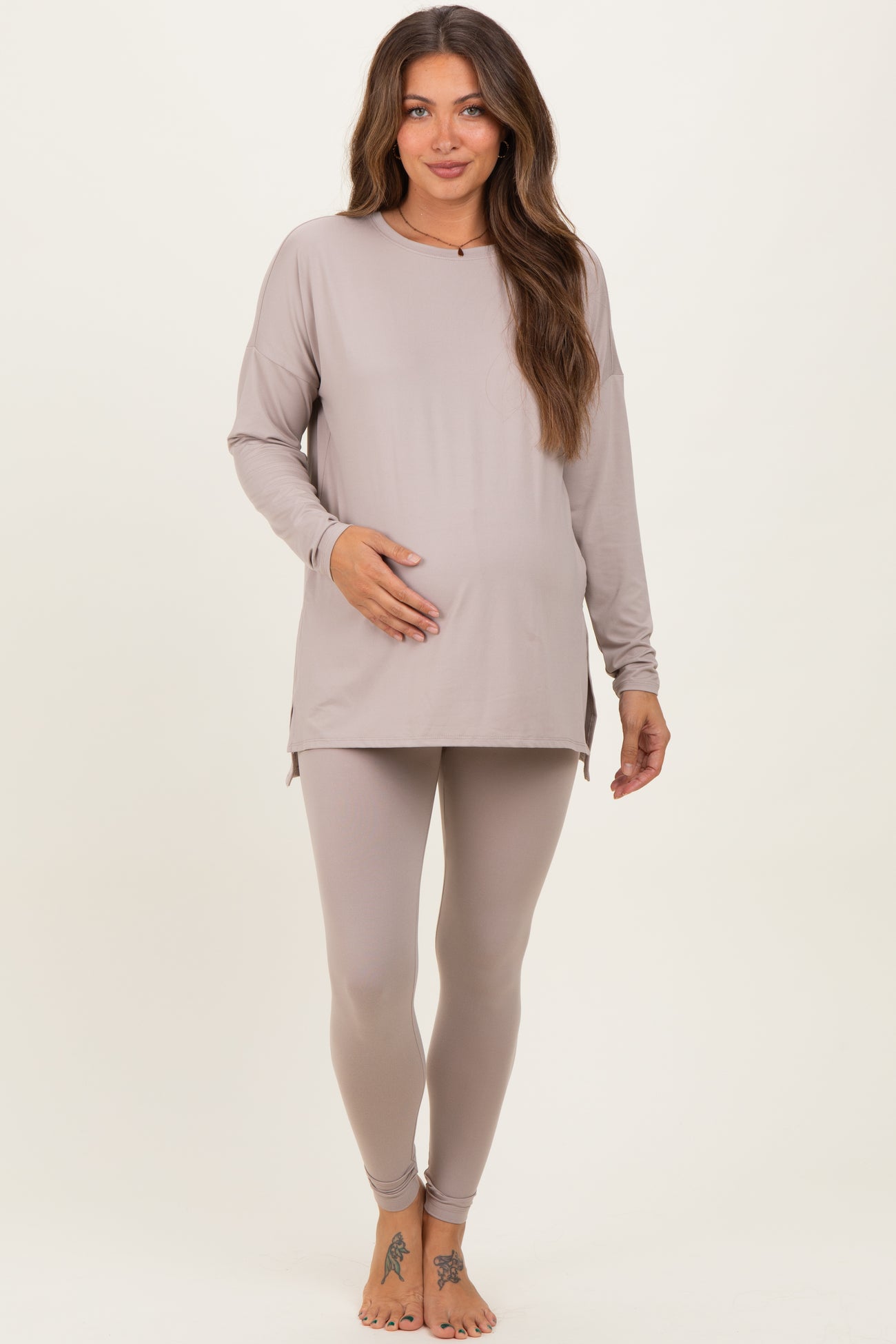 Light Mocha Brushed Knit Oversized Top and Legging Maternity Set