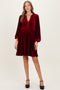 Rust Solid V-Neck Satin Long Sleeve Maternity Maxi Dress