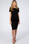 A solid ribbed fitted long sleeve maternity dress. Features mock neck.