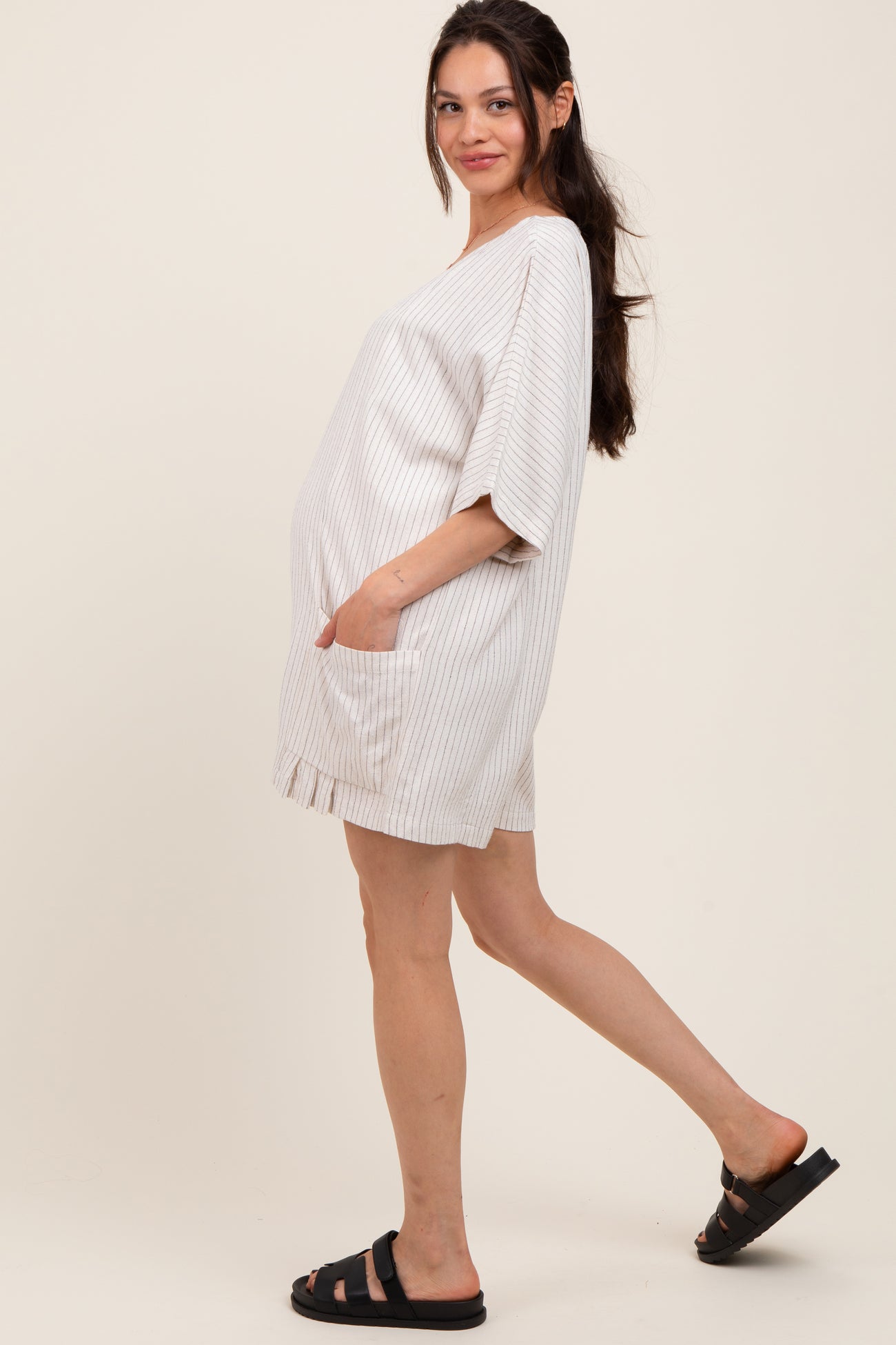 Beige Stripe Dolman Sleeve Linen Blend Maternity Romper