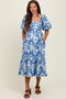 Charcoal Floral Waist Tie Maternity Maxi Dress